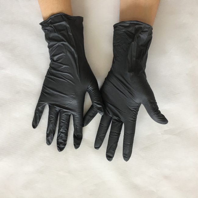 Oil and acid resistant black and white disposable nitrile gloves